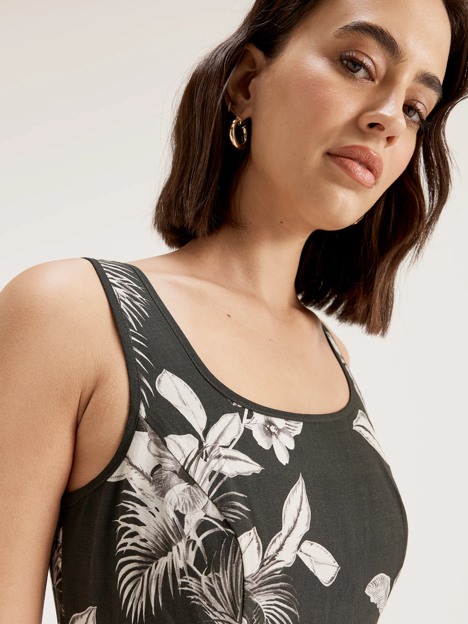 The summer nights are heating up so of course you need a dress to match! Meet our gorgeous Jungle Night Dress, the perfect combination of classy and casual for easy wear-everywhere appeal. Made of a luxuriously soft linen blend fabric, the Jungle Night Dress is designed to be lightweight and breathable to keep you comfortable through the balmy days and nights ahead, while the beautiful tropical floral print adds a splash of ‘island getaway’ vibes. With an elevated black and grey colour palette, this dress is cut to a midi length with a flattering scoop neckline, fitted bodice, and tiered panelling in the skirt. Finished with an elastic belt and exposed back zip, this dress is perfect for every occasion on your calendar this holiday season.