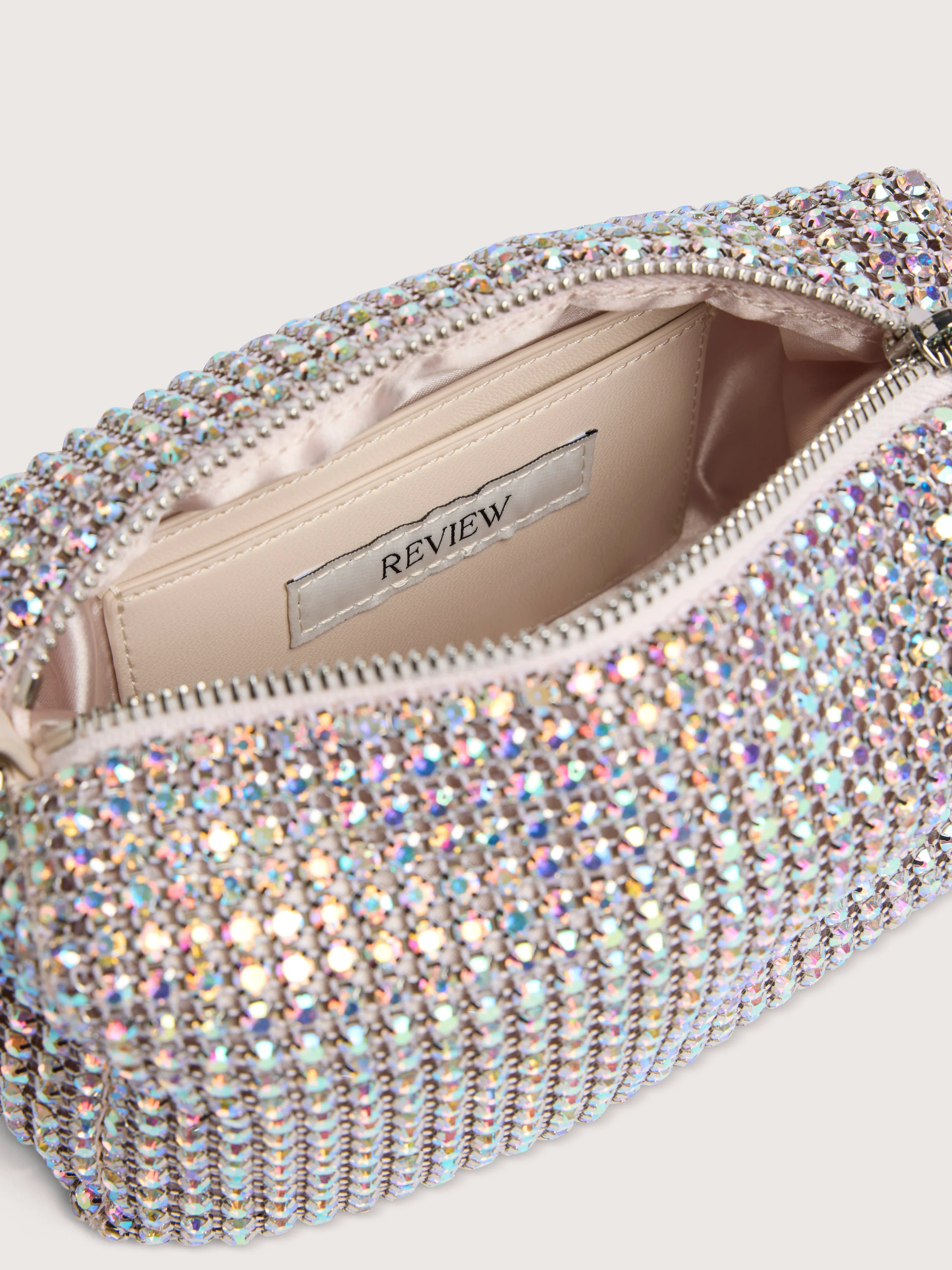 Adding simple, elegant accessories to your outfit is an easy way to elevate your look. The Kylie Clutch from our exclusive Occasion collection is a versatile accessory for adding into your eventwear repertoire. Made of a lightweight and soft fabric, the Kylie Clutch has a stylish organic shape accentuated by dazzling diamante embellishments, giving this bag a glam feel. With a zip closure and detachable chain strap, the Kylie Clutch can be carried by hand or worn as a crossbody bag.