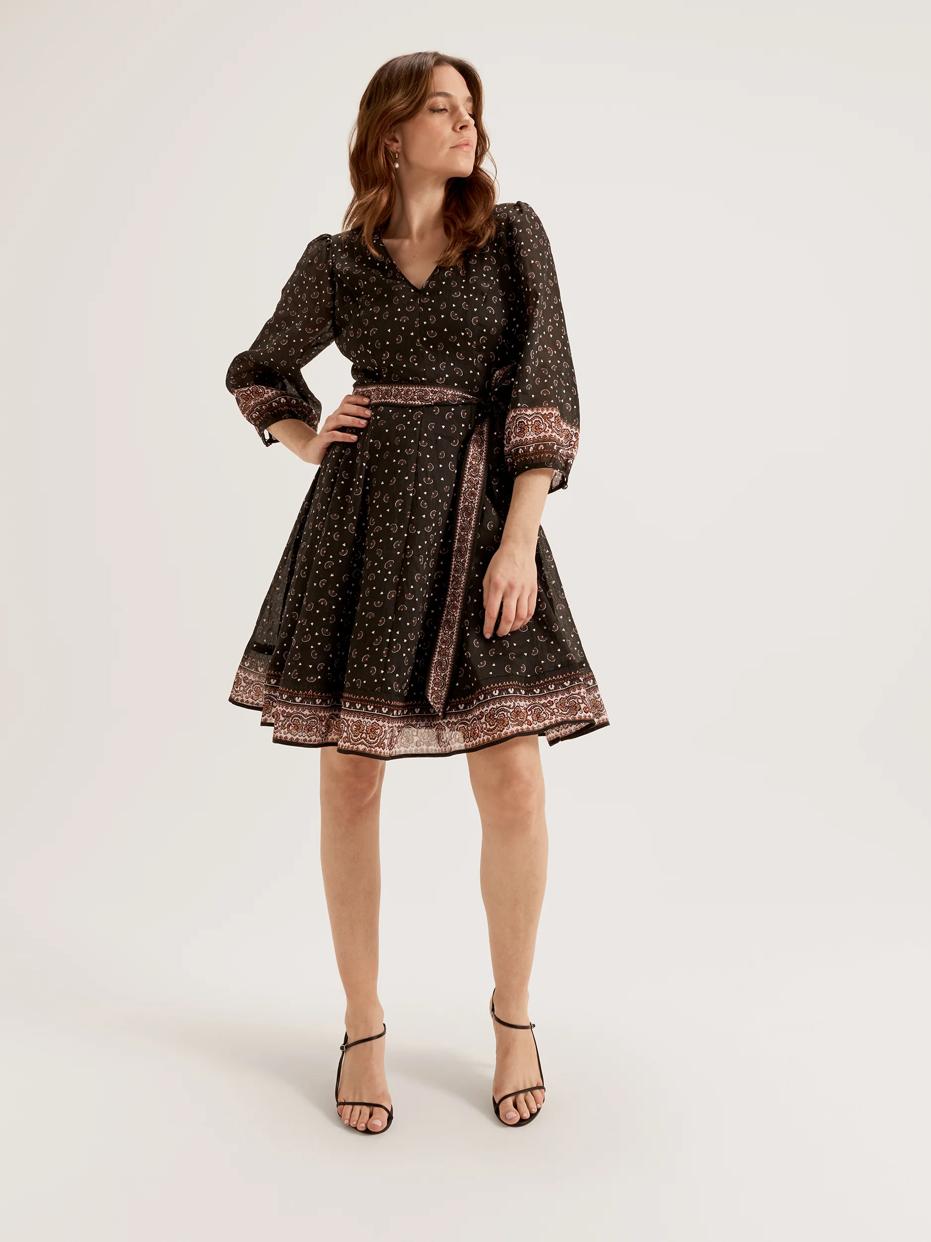 Sit back and bask in seaside vibes with the Portofino Paisley Dress. This above the knee length dress is the elegant answer to the Euro summer trend, featuring a V neckline and a Portofino Paisley placement print across the dress. It doesn't skimp on the details either, with panelling in the bodice and skirt, and a self fabric tie belt also adorned with our beloved placement print. Fully lined with panelling in both the bodice and skirt, the Portofino Paisley Dress fits and flatters your figure, providing both sophisticated structure and fluid skirt movement with its linen blend fabrication.